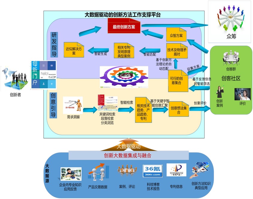 “创新驱动,方法先行”,成果是在国家实施创新驱动发展战略、推动创新创业高质量发展、打造“双创”升级版的大背景下,受到科技部创新方法工作专项等支持下研发的科技情报大数据与计算机辅助创新设计系统。系统基于Web数据集成、大数据知识抽取、知识图谱构建与推理、网络图的推荐、文本分析等技术,有效整合多源异构碎片化的创新知识,实现了大数据时代面向社会大众的普适化、智能化创新。系统包括大规模个性化创新需求的实时感知、基于大数据的结构化创新知识抽取和知识图谱构建、基于创新知识图谱的创意自动生成、创新方案智能匹配、问题求解推荐、创新度评估方法等关键技术,研发了需求洞察与捕获、创意引导、解决方案智能推荐、定制化数据爬取、基于众智的互动反馈与评价等系统功能。(http://www.bigdatainnovation.cn/)。